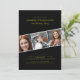 Modern black gold three photo collage birthday invitation