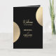 A modern black and gold semi circle abstract wedding design. This contemporary design is ideal for all seasons Spring, Summer, Fall and Winter weddings. A stylish gold foil look design in a trendy black and gold theme. A classy wedding order of service program design with modern elements. Matching wedding stationery items and other wedding invite formats are also available.