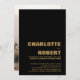 Invite your friends and loved ones with this stylish minimalist black with gold text wedding reception invitation featuring a photo of the newlyweds on the back to share your joy in your recent marriage. For best results fitting your chosen image for the back of the invitation crop it to a 5 x 7 ratio.