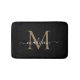Modern Black Gold White Monogram Script Elegant Bath Mat