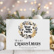 Send your clients or employees a beautiful Christmas card this year to share in the joy of the holiday season. This card features a modern chic design with a gold and black wreath with your logo in the centre. Add your contact information at the bottom to create Holiday Christmas card that also beautifully shares your brand.