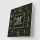 Modern Black Golden Circle Pattern Monogram Square Wall Clock
