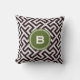 Modern black greek key geometric pattern monogram cushion