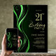 Invite your friends and loved ones with this modern black and green 21st birthday party invitation. The customisable text area in this invitation template allows you to effortlessly include all the necessary details for your special birthday celebration, including the date, time, venue, and RSVP information. A variety of paper types and corner styles are available for your unique invitations, along with the option to download if you prefer a digital format.