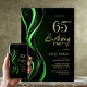 Invite your friends and loved ones with this modern black and green 65th birthday party invitation. The customisable text area in this invitation template allows you to effortlessly include all the necessary details for your special birthday celebration, including the date, time, venue, and RSVP information. A variety of paper types and corner styles are available for your unique invitations, along with the option to download if you prefer a digital format.