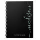 Modern, girly black green custom personalized spiral notebook. This simple design features black color background, with mint green name or monogram text template. The name is written with a huge beautiful swirly hand lettered style script. Great feminine gift for girls and woman. If you need help or matching items, please contact to me.