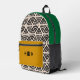 Modern Black Green Yellow Geometric Monogram Printed Backpack