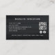 Customise this "Modern Black Grey Brush QR Code Social Media Business Card", featuring dark grey brush strokes on a black background, a monogram of your name and full name in a beautiful modern script, professional title, contact information, social media username, social media icons (Instagram, Facebook) address, and QR code. Please get in touch with the store designer for further customisation if needed.