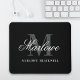 Modern Monogram Black White Grey Script Name mouse pad for your new home office.