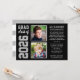 Announce your high school graduate in style with this multi-photo graduation announcement and party invitation. Two-sided "Now and Then" card features two photos of the grad (a current picture and older one from their first day of school) with a simple and masculine design with sports jersey inspired lettering. Black, silver grey, and white colours can be customised to match school colours. A pattern of white stripes dresses up the back of the card.
