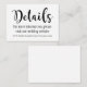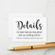 Modern wedding "Details" information card features a modern black and white colour scheme with bold and playful handwritten calligraphy script typography with stylish scroll details. Personalise the casual yet elegant custom text with your wedding website.