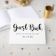 Modern wedding "Guest Book" features a modern black and white colour scheme with bold and playful handwritten calligraphy script typography with stylish scroll details. Personalise the casual yet elegant custom monogram text with the bride and groom names and wedding date.