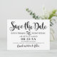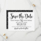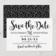 Modern wedding save the date announcement cards feature a modern black and white colour scheme with bold and playful handwritten calligraphy script typography with stylish scroll details. Personalise the casual yet elegant custom text with the bride and groom's names and wedding details. Includes a fun contrasting polka dot pattern on the back.