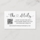 Modern and minimal "The Details" calligraphy script with cute heart accent enclosure card design features an invitation for guests to scan the QR code with their smart phone and visit your wedding website for more information about the big day. Wording can be completely personalised and the black text and white background colour can be modified to coordinate with your wedding colour scheme.