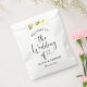 A romantic wedding favour bag featuring "Welcome to the Wedding of" in flowing black heart script with a sweet hand-drawn heart accent. The couple's names and wedding date complete the design in coordinating black tones on a clean white bag. All text is fully customisable. A lovely way to greet guests with treats at your welcome table, hotel gift bags, or reception entry display.