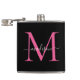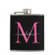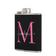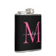 Modern Black Hot Pink Magenta Monogram Script Name Hip Flask