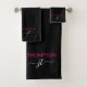Modern Black Hot Pink Simple Script Monogram Name Bath Towel Set
