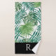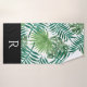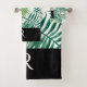 Modern Black Leaf Pattern Monogram Bathroom Towel