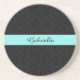 An elegant black on black leopard print sandstone coaster with an aqua stripe. This preppy and chic animal pattern can be personalised by adding the name of a modern woman.