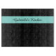 An elegant black on black leopard print cutting board with an aqua stripe. This preppy and chic animal pattern can be personalised by adding the name of a modern woman.