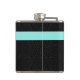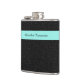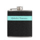 Modern Black Leopard Print Aqua Stripe With Name Hip Flask