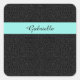 Modern Black Leopard Print Aqua Stripe With Name Square Sticker