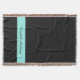 An elegant black on black leopard print throw blanket with an aqua stripe. This preppy and chic animal pattern can be personalised by adding the name of a modern woman.