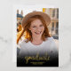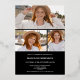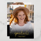 Celebrate the graduate in style with this chic and modern gold foil graduation invitation. Featuring a full-page portrait on the front with elegant script typography, this design keeps it simple yet stylish. The back showcases a collage of three additional photos, making it perfect for capturing special moments. With clean lines and a timeless white background, this invite is ideal for high school or college graduations. Personalise the details to make it uniquely yours! gold on black.