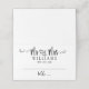 A stylish wedding escort card featuring "Mr. and Mrs." in dramatic flowing calligraphy script with the couple's surname and wedding date on a clean white background. The bold, artistic lettering creates a striking monogram centerpiece for modern and classic receptions alike. The surname and date are easy to personalise. Guest names and table assignments are filled in by hand.