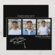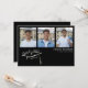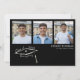 Celebrate your graduate with this modern black multi photo graduation announcement featuring a clean, minimalist layout and elegant typography. The front showcases a stylish three-photo collage with a classic graduation cap illustration, while the back keeps it simple with refined event details.