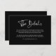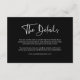 These black, modern wedding guest detail information cards feature a trendy and elegant style, with white casual handwritten script and classic text. You can use these cards for driving directions, reception or transportation information, hotel or accommodations information, and any other wedding details you need your guests to know.