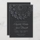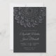 Modern, sleek wedding invitations with a black paper cut mandala on black with grey text.