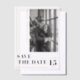 Announce your special day with these modern black photo save the date vellum invitations. Featuring a sleek design with bold typography and space for your favourite photo, these invitations are perfect for contemporary couples. The translucent vellum overlay adds a touch of elegance, making them a stylish choice for any wedding theme.