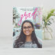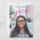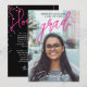 This modern stylish Photo Announcement for graduation features minimalist design adorned with bold magenta and white typography, complemented by a striking large photo, on the front. Flip it over to the back, where all the graduation details are elegantly presented against a stylish black background. Feel free to personalise the photo and texts to make it uniquely yours. Plus, it's conveniently available in digital download format for easy sharing. Make a statement with this chic announcement!!