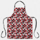 This modern apron features a dark geometric pattern with black, red, grey, and white triangles and rectangles.