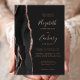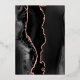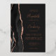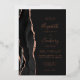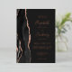 The left-hand edge of this elegant modern wedding invitation features a black watercolor agate border trimmed with faux rose gold glitter. The customisable text combines handwriting, copperplate and italic fonts in real rose gold foil on an off-black background. The reverse side features a matching black and rose gold agate design.
