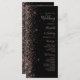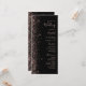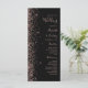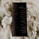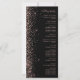 The left-hand edge of this elegant modern wedding program features a rose gold faux glitter design. The customisable text combines pale rose coloured handwriting, copperplate and italic fonts on a black background.