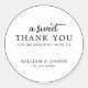 Modern Black Script Sweet Thank You Wedding Favour Classic Round Sticker