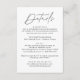 Simple and elegant wedding details card featuring a black, handwritten script mixed with modern lettering against a white background. Personalise the minimalist wedding details card with your wedding details such as reception information, hotel accommodations, wedding website, etc. The black and white wedding details card is perfect for modern weddings.