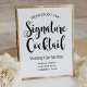 Rustic chic wedding "Signature Cocktail" sign features a modern black and white colour scheme with bold and playful handwritten script typography and floral scroll design accents. Personalise the elegant custom text with your signature wedding drink cocktail recipe for your casual wedding day.