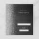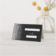 This elegant, modern wedding table reserved seating place card features a silver faux glitter design along one edge on a black background. The front of the card provides space for the guest's name and table number in the form of silver grey rectangles. The word "table" appears in silver grey handwriting script with swashes before and after. Customise the back of the card with the names of the bride and groom in silver grey handwriting script and the wedding date below in sans serif font.