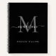 Elegant Modern Black Silver Slate Grey Girly Monogram Initial Script Name Notebook