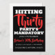 Celebrate your dirty thirty in style with this simple, elegant and sophisticated 30th Birthday Invitation! Featuring a clean, modern design in bold white and red text in black background, and this invitation is perfect for the adult who wants a touch of class for their milestone birthday. Personalise it with your name, party details.