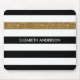 Modern Black Stripes FAUX Gold Glitz and Name Mouse Mat