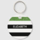 Modern Black Stripes FAUX Green Glitz and Name Key Ring