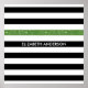 Personalize this modern wide horizontal black and white stripes pattern poster with a green glitter-like stripe by adding the name of any girly girl. This trendy graphic striped pattern is perfect for the chic fashionista. Flat printed image, NOT actual glitter.