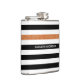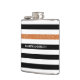 Modern Black Stripes FAUX Orange Glitz and Name Hip Flask