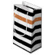 Modern Black Stripes FAUX Orange Glitz and Name Small Gift Bag
