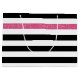Personalise this modern wide horizontal black and white stripes pattern large size gift bag with a glitzy pink glitter-like stripe by adding the name of the party girl. This trendy graphic striped pattern is perfect for the chic fashionista. Flat printed image, NOT actual glitter.