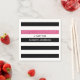 Personalise these modern wide horizontal black and white stripes pattern paper napkins with a hot pink glitter-like stripe by adding the name of any girly girl. This trendy graphic striped pattern is perfect for the chic fashionista. Flat printed image, NOT actual glitter.